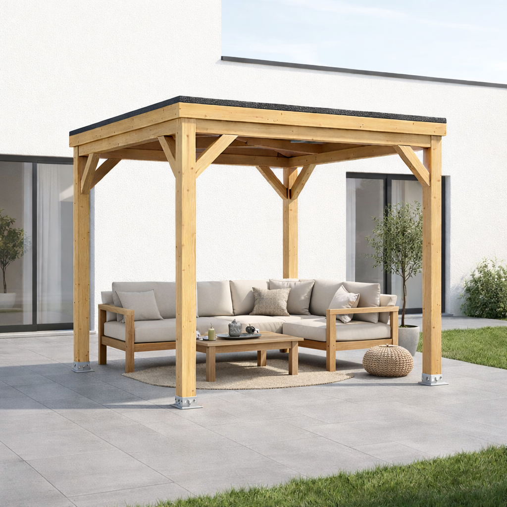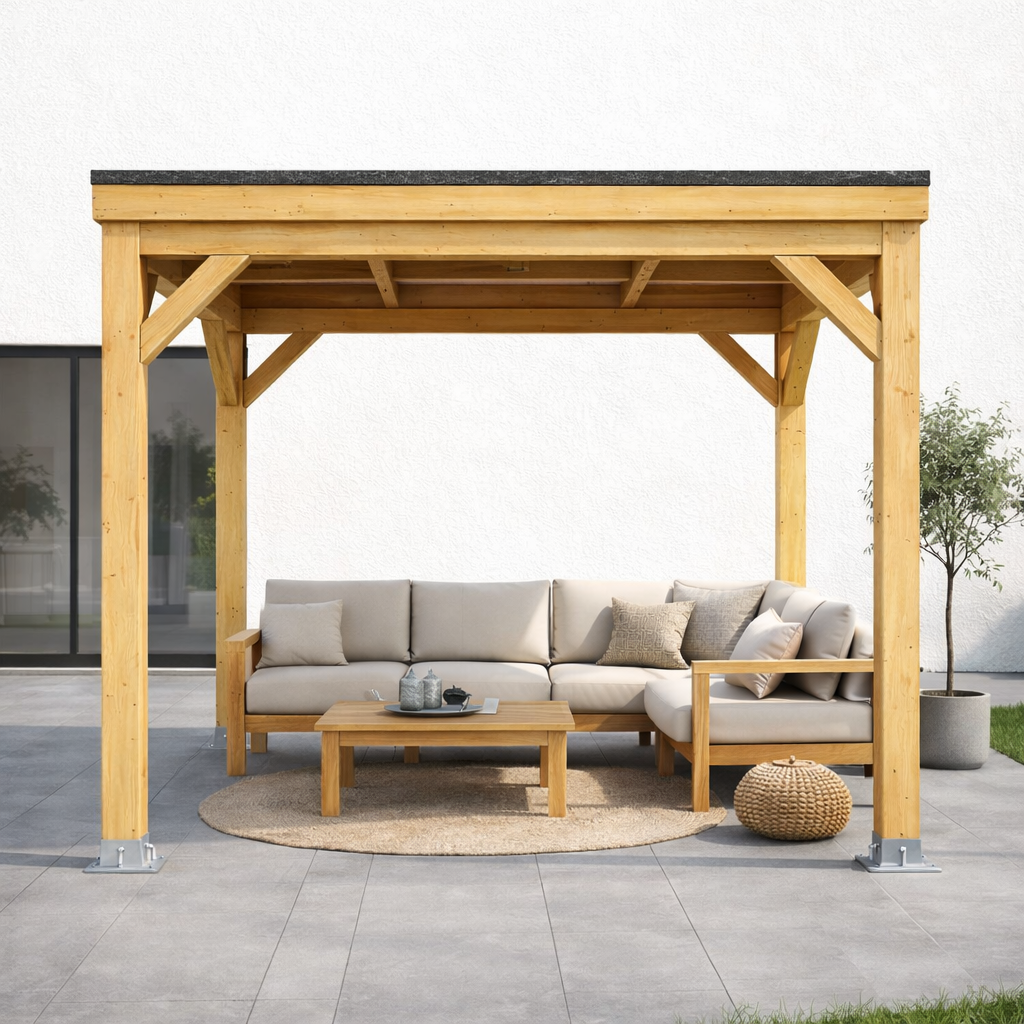 La Pérgola Laminada 3×3 Techada es la solución perfecta para disfrutar del jardín durante todo el año. Su madera laminada de abeto, su techo con inclinación y su tratamiento protector en color roble claro la convierten en una estructura duradera, elegante y funcional. Una inversión en confort, estética y calidad que eleva la experiencia del hogar al aire libre.